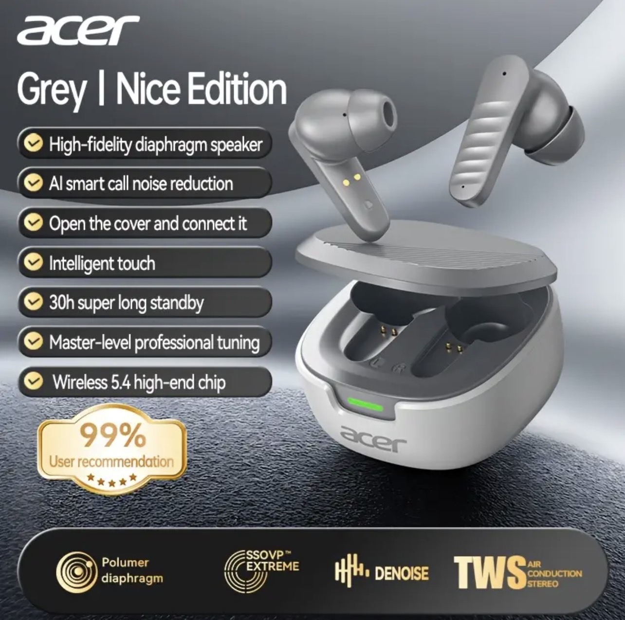Los auriculares inalámbricos deportivos mini Acer OHR503 ofrecen 30 horas de tiempo de espera, cancelación de ruido y un ajuste cómodo con controles táctiles. Son el último modelo y son universalmente compatibles.